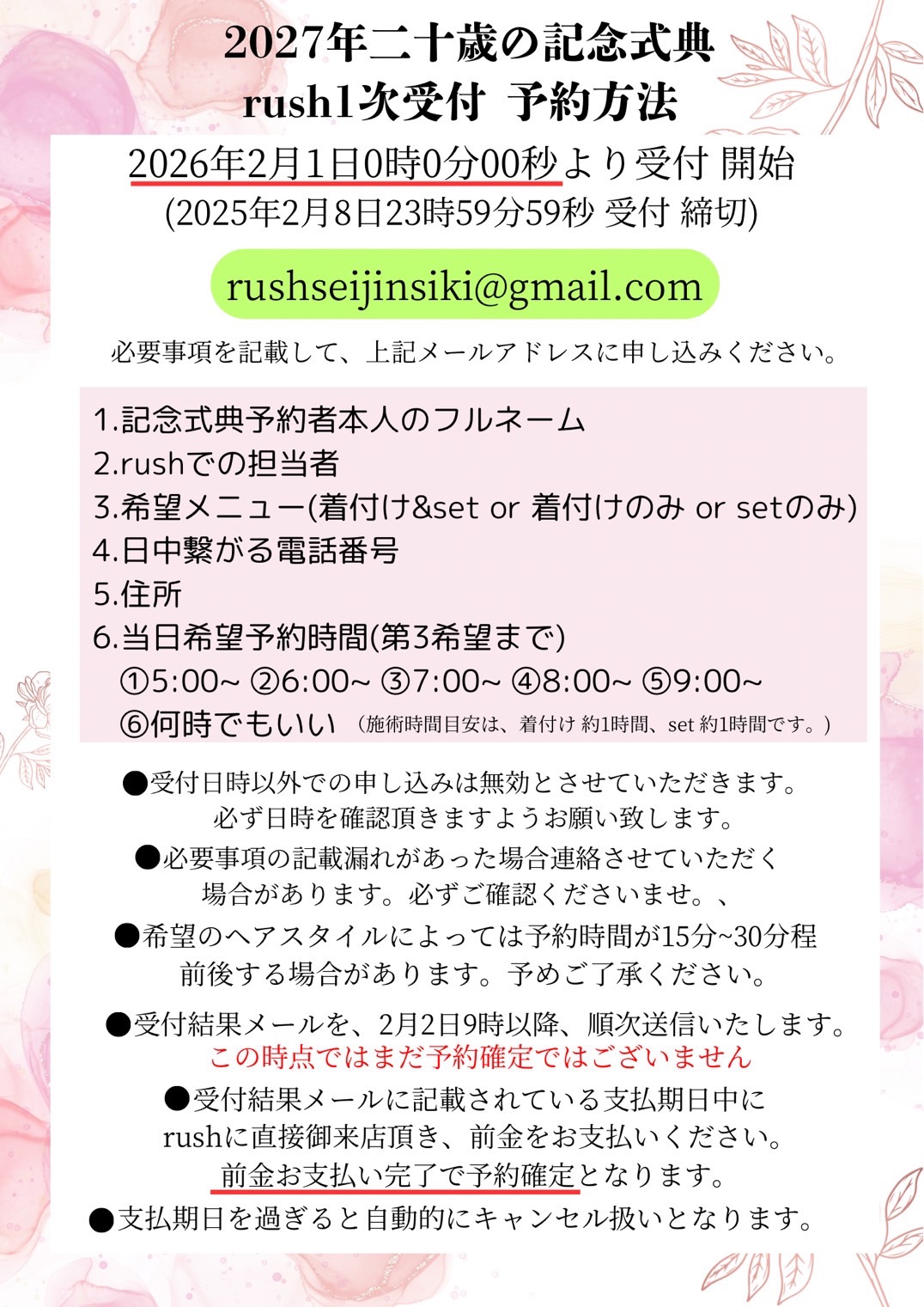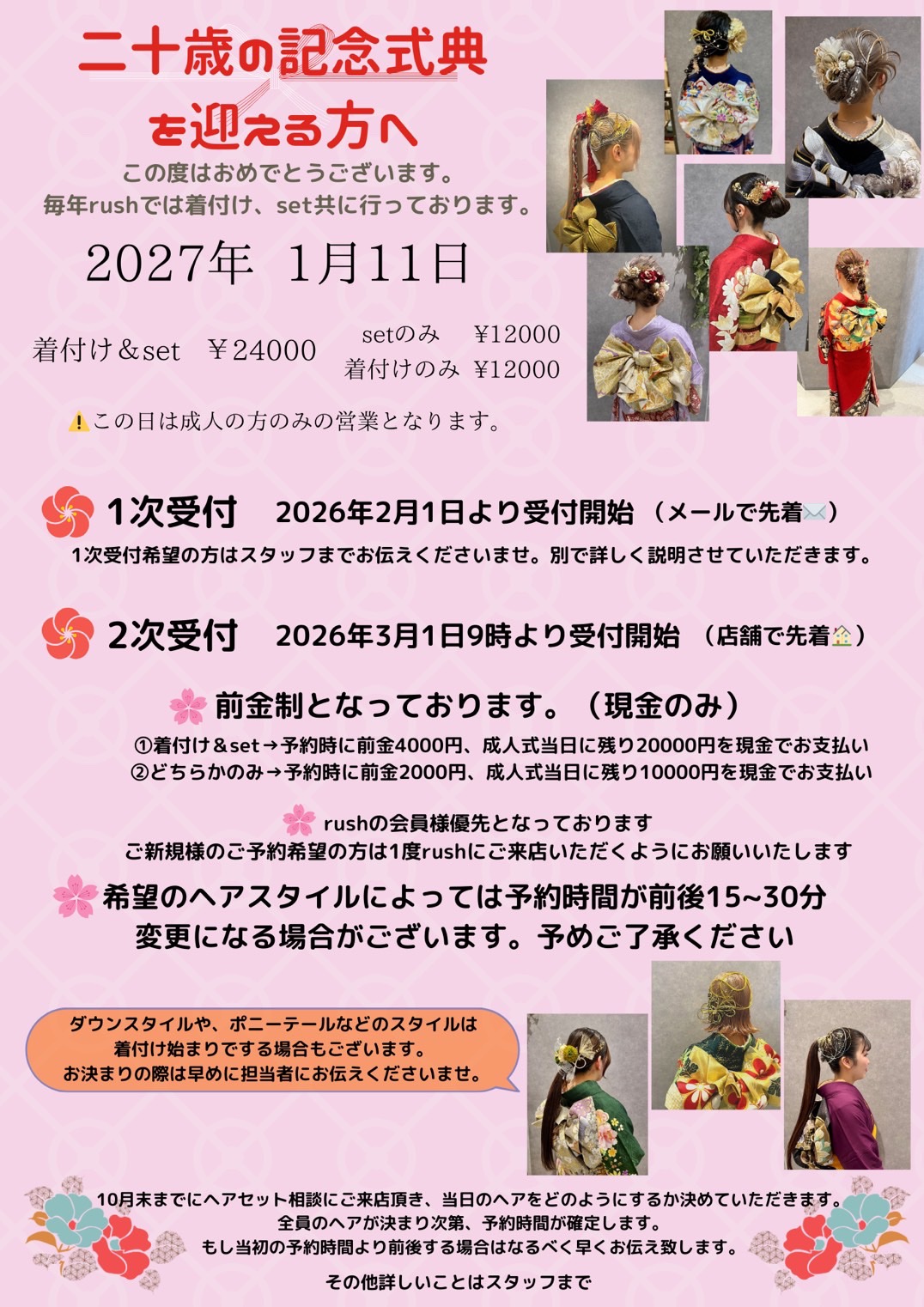 🌸2027年 成人式のご予約について🌸
